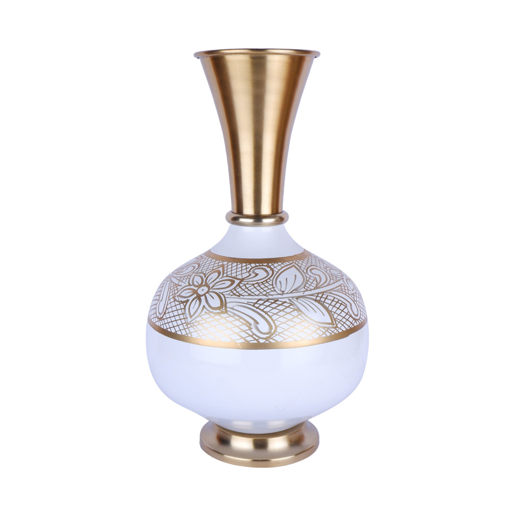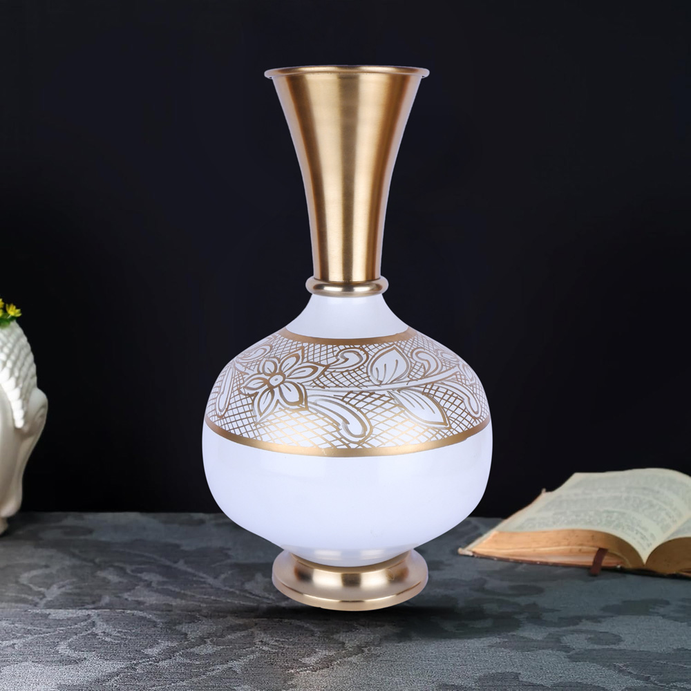 Material: Aluminium Metal with white finish and golden detailing (likely painted or enameled)