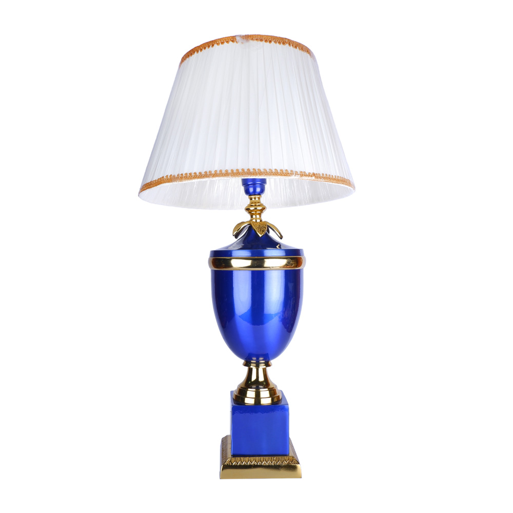 Color: Blue Base with Gold Accents & White Shade with Gold Trim