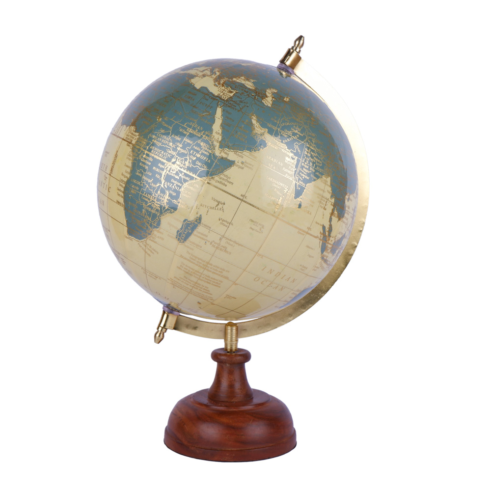 Material: Aluminium Globe material (likely plastic or composite) with painted finish, Wooden base, Metal meridian