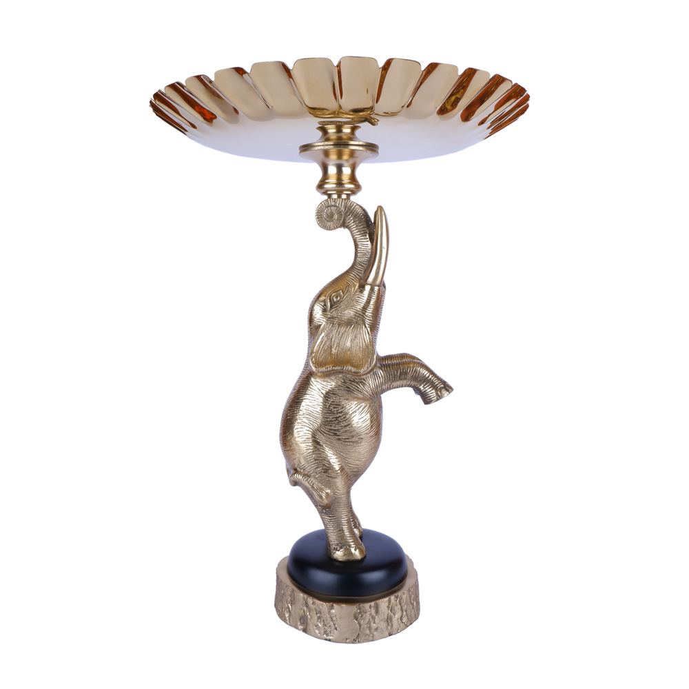 Color: Golden elephant and tray; Mixed golden/natural texture and black for the base.