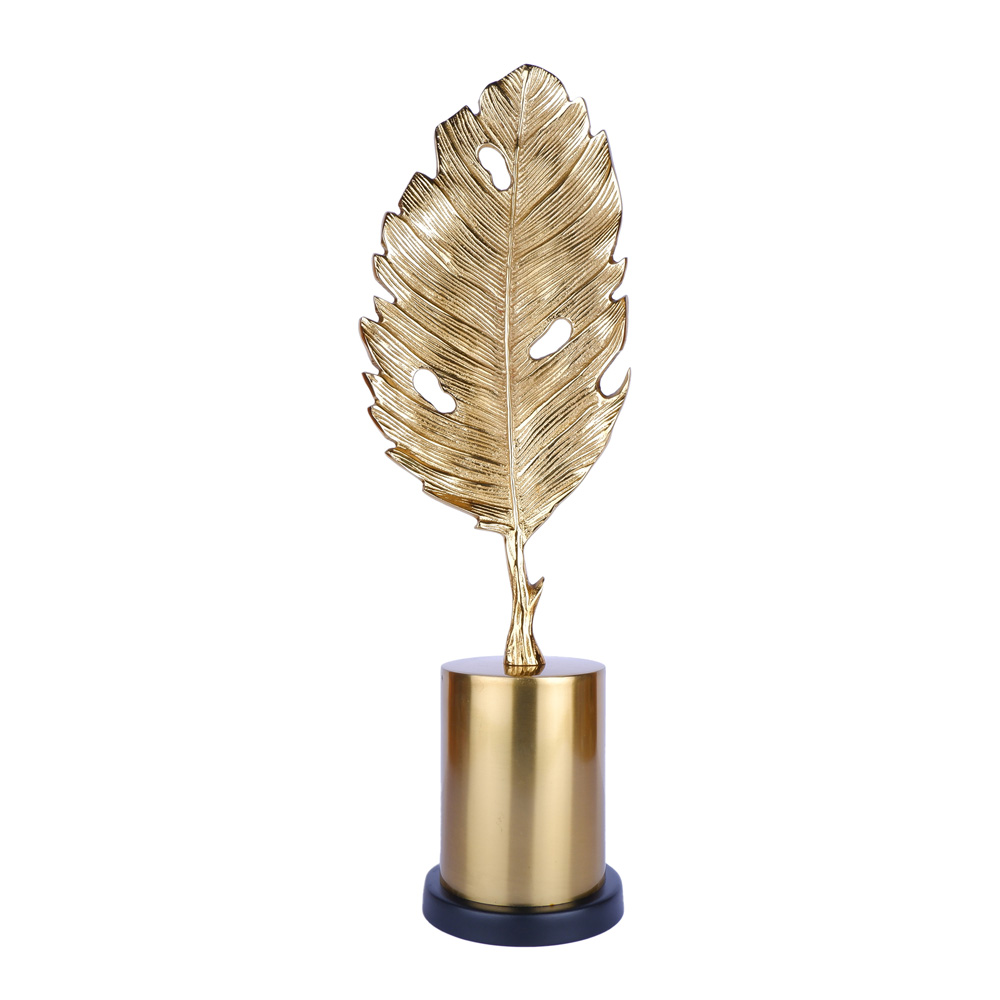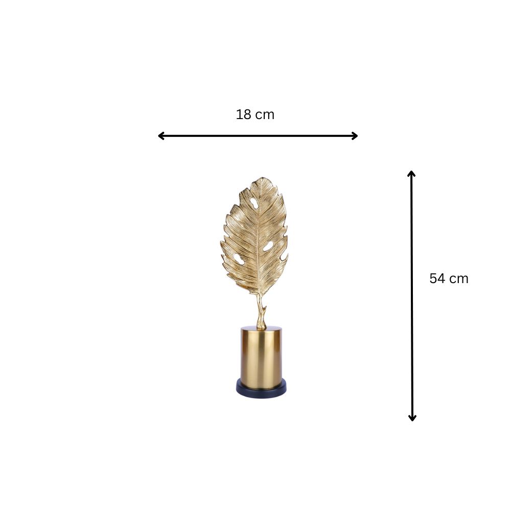 Material: Aluminium High-quality Metal (or metal-coated material) for the leaf and golden base; Composite or wood for the black stand.