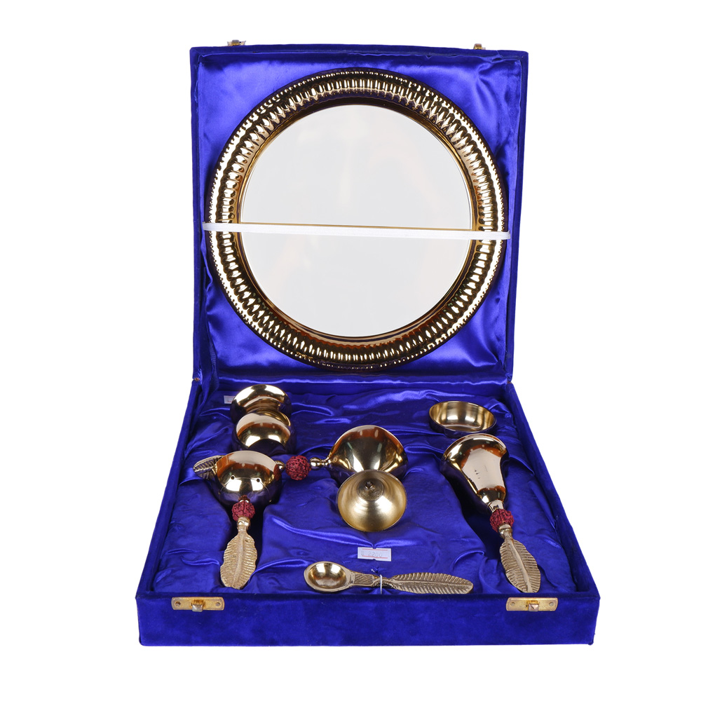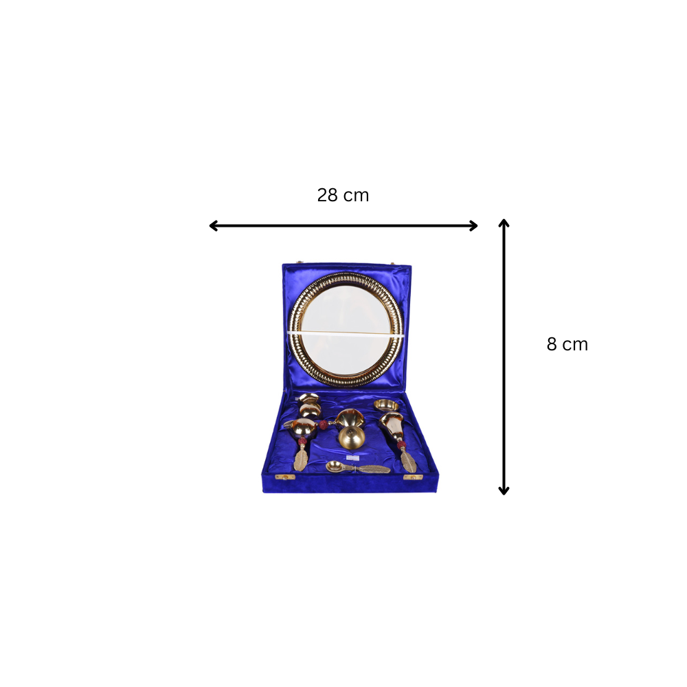 Material: Polished Metal (Likely Brass/Alloy) with Velvet-lined Wooden Box