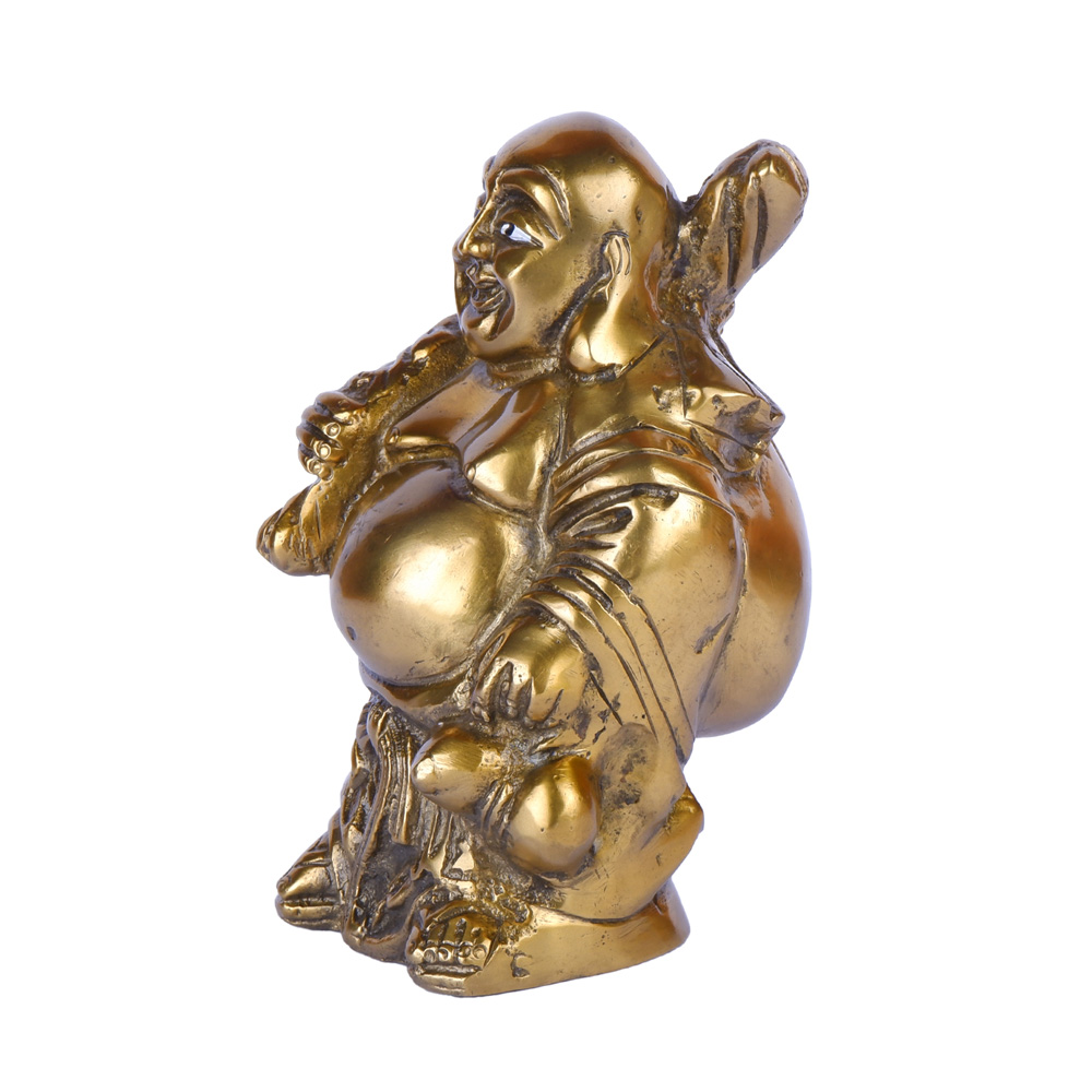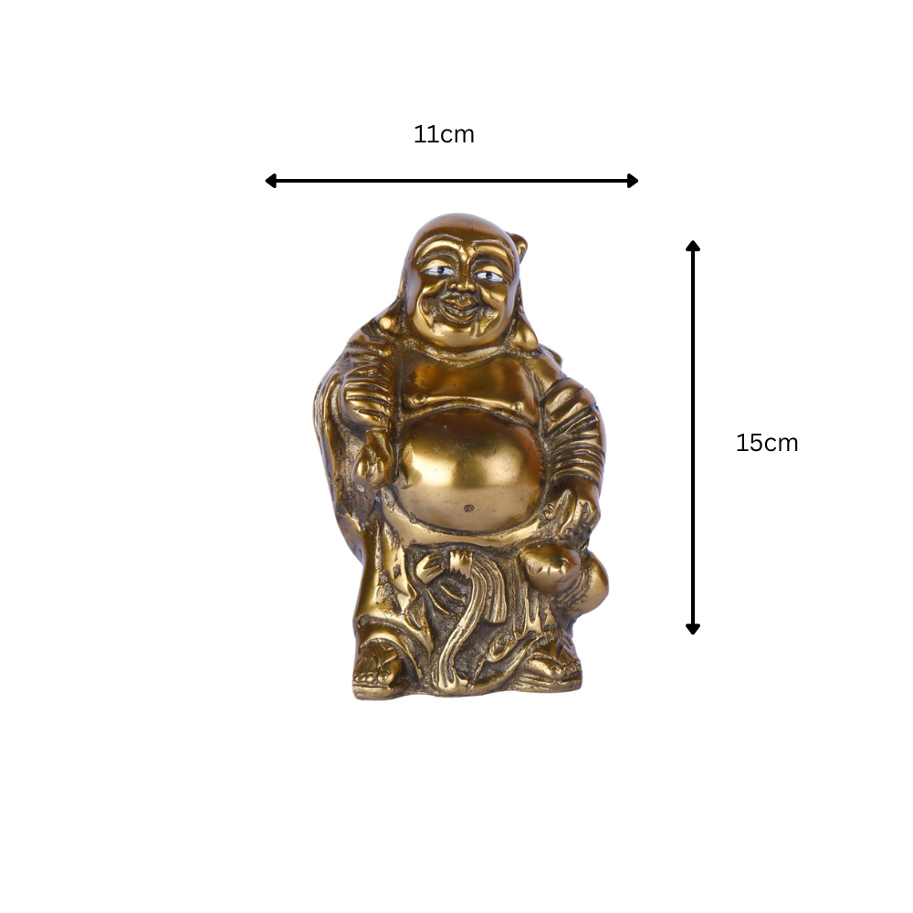 This delightful brass idol features the Laughing Buddha (Hotei or Budai), a universally cherished symbol of happiness, prosperity, and good fortune, depicted in a joyful standing pose. With a prominent, round belly and a wide, beaming smile, this idol radiates infectious contentment and abundance. He is often shown with a sack of treasures, symbolizing wealth and good fortune. Crafted with attention to detail, this idol captures the essence of his carefree and generous spirit, making it a perfect addition to a desk, shelf, or as a thoughtful gift, inviting positive energy, laughter, and prosperity into any space.